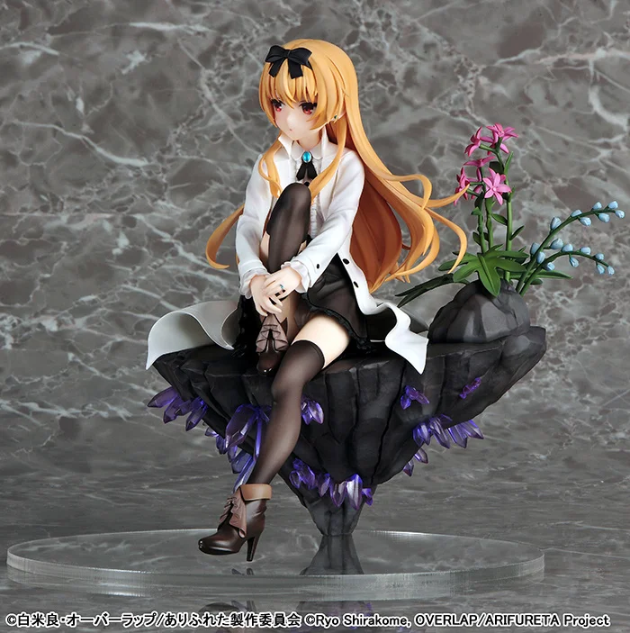 From WINGS with sculpting by Kakin Toushi comes a 1/7 scale figure of main heroine Yue from the popular anime Arifureta: From Commonplace to World’s Strongest! Measuring 7.9″, the former vampire princess sealed away in the abyss sits on a rocky base modeled after the abyss featuring crystals made using translucent parts for a realistic look and flowers blooming from a rock behind her, and she’s dressed in her outfit from the series, which features careful sculpting and lots of details to enjoy. Add her to your collection!