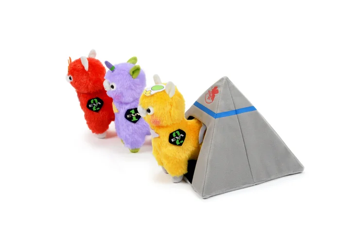 Evapacassos are characters born from a collaboration between Alpacassos, a plush toy series based off alpacas, and the extremely popular Evangelion series. They’re designed after Unit-01, Unit-00, and Unit-02 and each of these units have had their characteristics woven into the Alpacassos. The cute Alpacassos with their big eyes have been fused with the Evas’ unique coloring and decorations.