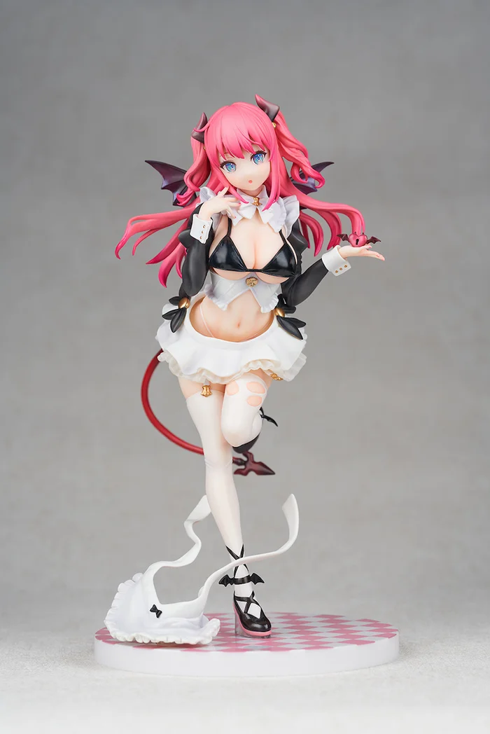 From the illustration work of Mimoza comes a dreamy, scantily-clad succubus named Liliya! This busty bishoujo figure has been produced to a stimulating 1/7 scale, measuring 9.4″ tall! Liliya-chan is dressed in a revealing black and white maid outfit, depicted with one leg connected to the base. Her apron has just fallen off, creatively expressing the momentum of her pose. With a soft, alluring expression on her face, Liliya is happy to serve you!