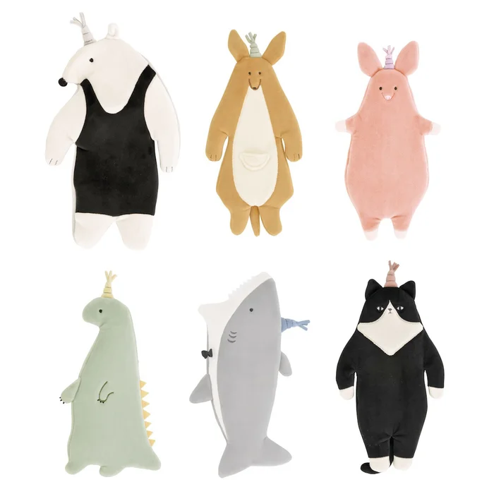 It’s nice to have something to hold onto while you’re falling asleep, and now you can get snuggled up with the adorable animals of the Roomies Party series from LivHeart! Each is super soft and cuddly, and you can choose between Kangaroo, Anteater, Pig, Dinosaur, Shark, and Cat versions, each adorably dressed up for sleep and perfect for holding onto~