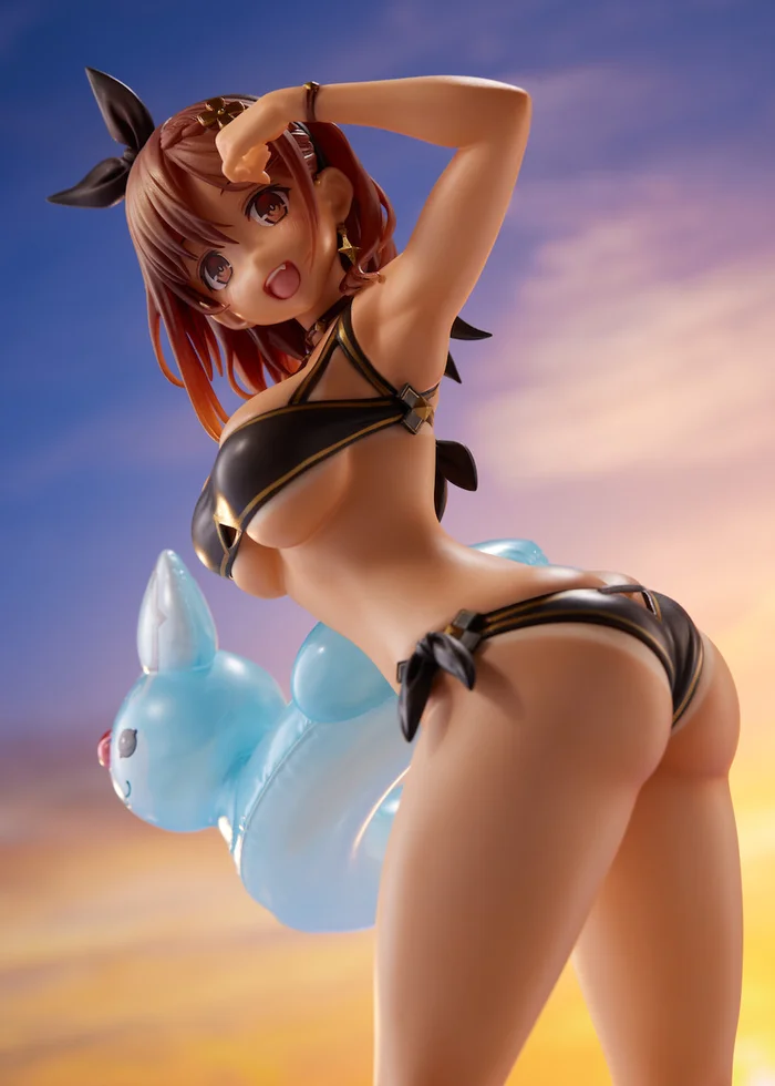 The popular 1/6 scale figure of the breathtaking Ryza from Atelier Ryza 2: Lost Legends & the Secret Fairy in a bikini is back, and this time she’s rocking a black bikini with tanned skin! Produced for Taito’s Spiritale line and sculpted by sun sauce based on original artwork by illustrator Toridamono, she is captured at an attention-grabbing 10.6″ tall enjoying summer to the fullest in a skimpy, tight black bikini with tan lines peaking out here and there. Her innocent expression and thicc curves are captivating on their own, but her suntanned skin gives her a different charm than usual that is hard to resist.