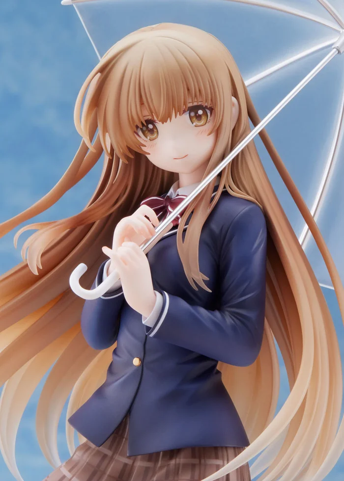 Sculptor Deru and FuRyu introduce a picture perfect figure of Mahiru Shiina from the anime series The Angel Next Door Spoils Me Rotten! Mahiru-chan is 1/7 scale and measures 8.9″ to the top of her head. She looks graceful and delicate in her dark blue blazer and plaid skirt. Her gradient hair lightens at the tips, giving her a truly angelic glow! The figure also features real fabric black tights and a see-through umbrella made of translucent material! Fans of the series are sure to appreciate adding this bishoujo to their collections!