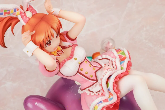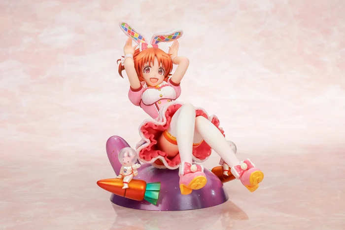 From Broccoli with sculpting by LAN (Knead) and paintwork by Nana Moriyama comes this 1/7 scale figure of Nana Abe from The Idolm@ster Cinderella Girls. Measuring 6.3″, she is designed after her “Huff Huff Usamin” SSR+ card illustration. It has been faithfully recreated in this 3D figure form, from her fluffy white ears with a rainbow diamond pattern to the bunny design on the bottom of her pink bow boots!